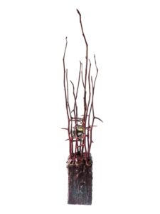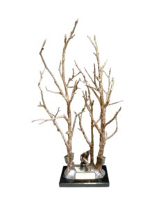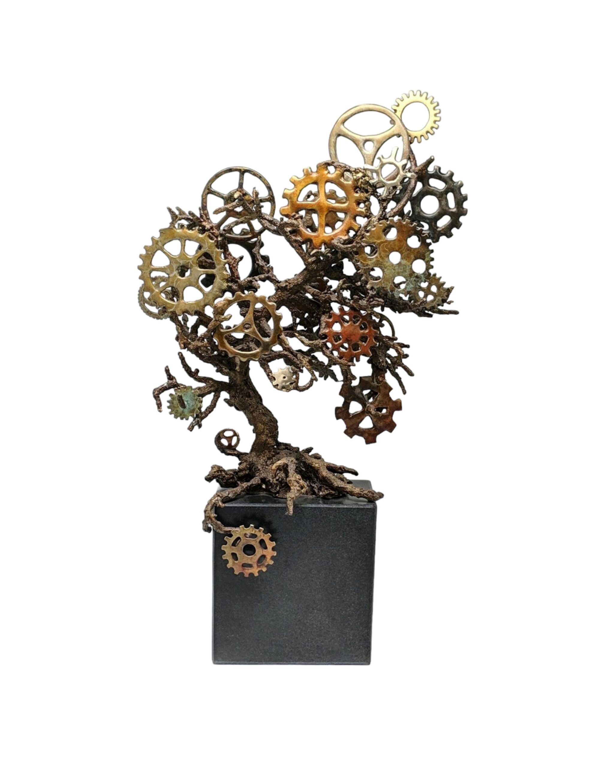 En 1999, la carrière de Mélanie prend un virage inattendu à la faveur d’un déménagement à Inverness. Serge Gérard, alors propriétaire de la fonderie, l’initie au métier de fondeur et, plus particulièrement, à l’art de la patine. Anne Renard, sculpteure, l’initie pour sa part à la sculpture. C’est le coup de foudre. Elle développe une œuvre polymorphe, des arbres expressifs et inspirés, à partir d’éclats de bronze, très populaires auprès des amateurs d’Art.